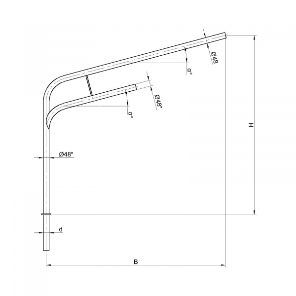 Двухрожковые кронштейны К9-4,0-2,5-1-1 предназначены для крепления светильника на трубчатой опоре освещения.